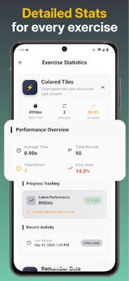 Met een dagelijks trainingsschema dat slechts 5-10 minuten van uw tijd vraagt, passen deze hersenoefeningen perfect in elke drukke levensstijl. Geniet van een afleidingsvrije omgeving boordevol diverse vaardigheidsspellen en geheugenuitdagingen, en volg uw vooruitgang nauwkeurig met heldere prestatie-indicatoren. Ideaal voor volwassenen die hun cognitieve gezondheid willen onderhouden, professionals die een mentaal voordeel zoeken, iedereen die te maken heeft met aandachtsgerelateerde uitdagingen, of simpelweg personen die toegewijd zijn aan persoonlijke groei door middel van bewezen mentale trainingsmethoden. Ervaar de impact van hoogwaardige hersentraining in uw dagelijks leven.