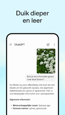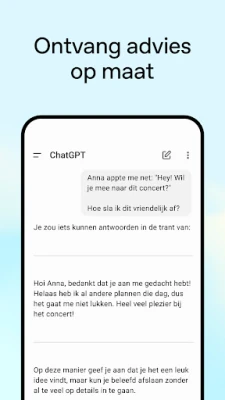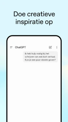 Laat uw creativiteit de vrije loop met **ChatGPT**. Genereer unieke ideeën voor cadeaus, stel persoonlijke wenskaarten samen die echt raken, of brainstorm over innovatieve marketingstrategieën voor uw bedrijf. Heeft u behoefte aan een klankbord of een oplossing voor een complexe situatie? Ontvang advies op maat en formuleer de perfecte reactie. Bovendien maakt **ChatGPT** leren toegankelijk en leuk: van het uitleggen van complexe wetenschappelijke concepten aan een nieuwsgierig kind dat gek is op dinosaurussen, tot het moeiteloos opfrissen van uw geschiedeniskennis. Zelfs voor de alledaagse uitdagingen, zoals het vinden van een recept met slechts enkele ingrediënten, biedt de app directe en praktische oplossingen.