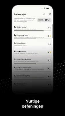 Open de app en dompel uzelf onder in een zorgvuldig samengestelde reeks hersenoefeningen, ontworpen om uw cognitieve vaardigheden te optimaliseren. U zult snel merken hoe uw geheugen, logisch inzicht en reactiesnelheid een boost krijgen. "Concentratietraining" bevat modules die u uitdagen om snelle beslissingen te nemen, gedetailleerde visuele informatie te verwerken, getallen en posities te onthouden, en uw reflexen te verscherpen. Elke interactie is een stap voorwaarts in het ontwikkelen van een scherpere geest, essentieel voor een effectieve aanpak van elke uitdaging.