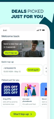 Verhoog mobiel tegoed wereldwijd met Ding. Via de Ding-app koopt u snel en veilig beltegoed voor uzelf of dierbaren, waar u ook bent. Geniet van direct opgeladen telefoons en blijf altijd verbonden.