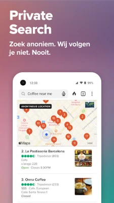 Voel je je ongemakkelijk over wie je online activiteiten volgt? Met DuckDuckGo neem je de controle over je digitale privacy terug. Deze krachtige app is ontworpen om je een ongekend veilige en anonieme surfervaring te bieden. Van standaard privézoekopdrachten, die een kernfunctionaliteit van DuckDuckGo vormen, tot het proactief blokkeren van een breed scala aan webtrackers, DuckDuckGo zorgt ervoor dat jouw online leven écht privé blijft. Ontdek een internet waar jij de regels bepaalt, zonder ongewenste blikken.