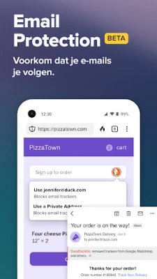De DuckDuckGo-app biedt uitgebreide online privacybescherming. Gebruik de privéwebbrowser voor dagelijks zoeken en browsen, en geniet van naadloze bescherming tegen tracking in e-mails en apps. Deze unieke privacyfuncties overtreffen die van de meeste populaire browsers.