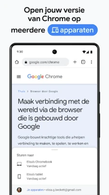 Uw digitale leven stopt niet bij één apparaat, en dat geldt ook voor Chrome. Geniet van een naadloze ervaring door uw belangrijke gegevens zoals bookmarks, geopende tabbladen en wachtwoorden moeiteloos te synchroniseren tussen uw telefoon, computer en tablet. Organiseer uw browsesessies overzichtelijk met behulp van Tabbladgroepen, zodat u altijd het overzicht bewaart, ongeacht het apparaat. Bespaar kostbare tijd met de slimme Autofill-functie, die uw opgeslagen betalingsgegevens, adressen en wachtwoorden automatisch invult, waardoor online formulieren invullen een fluitje van een cent wordt.