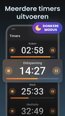 Optimaliseer elke seconde van uw dag met Stopwatch en timer gratis, de ultieme metgezel voor efficiënt tijdbeheer. Deze geavanceerde applicatie stelt u in staat om moeiteloos een onbeperkt aantal timers tegelijkertijd in te stellen en te beheren, perfect voor het jongleren met diverse projecten, het organiseren van uw dagelijkse routines, of het nauwkeurig bijhouden van verschillende activiteiten. Van complexe werktaken tot persoonlijke doelen, Stopwatch en timer gratis geeft u de volledige controle en het overzicht dat u nodig heeft om uw productiviteit naar nieuwe hoogten te tillen. De intuïtieve interface maakt het starten van een timer een fluitje van een cent, terwijl een duidelijke voortgangsbalk de verstreken tijd visualiseert.