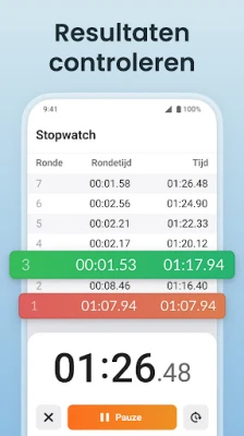 Voor momenten die uiterste precisie vereisen, biedt Stopwatch en timer gratis een uitzonderlijke stopwatchfunctie. Ideaal voor atleten, fitnessenthousiasten en iedereen die streeft naar nauwkeurige metingen, registreert de stopwatch tot op de milliseconde. Met de ingebouwde rondetimer kunt u gedetailleerd de voortgang bijhouden en prestaties grondig analyseren, alles gepresenteerd op een helder en gemakkelijk leesbaar display. Schakelen tussen timer en stopwatch is een kwestie van één tik, waardoor deze tool zich naadloos aanpast aan elke behoefte.