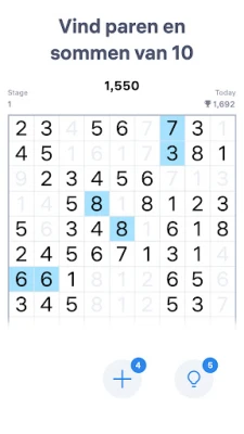De kern van Number Match is verrassend eenvoudig: maak het speelveld leeg door strategisch nummers te combineren. Zoek naar identieke paren of duo's die samen het magische getal 10 vormen, zowel direct naast elkaar (horizontaal, verticaal of diagonaal) als slim over de randen van regels heen. Elk succesvol weggestreept paar levert punten op en brengt je dichter bij de complete overwinning. Kom je even vast te zitten? Geen nood, voeg extra rijen toe met resterende cijfers of gebruik een handige hint om je voortgang te bespoedigen en je puzzeloplossend vermogen te verfijnen.