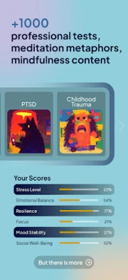Streef naar een veerkrachtige geest en een evenwichtig leven met "Self Therapy: Mental Tests", uw persoonlijke gids voor mentaal welzijn en zelfontdekking. Of u nu zoekt naar ondersteuning bij specifieke uitdagingen zoals ADHD, trauma of depressie, of simpelweg uw stemming stabiel wilt houden, deze applicatie biedt een rijkdom aan middelen om uw mentale leeftijd te verbeteren en uzelf te bekrachtigen. Duik diep in zelfzorg en persoonlijke groei met geavanceerde tools die ontworpen zijn om introspectie te bevorderen en vooruitgang in kaart te brengen, allemaal binnen handbereik.