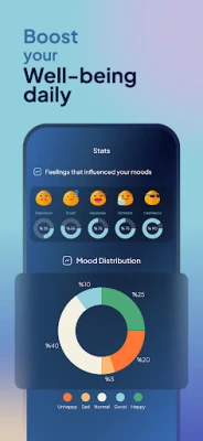 Volg uw reis met de gepersonaliseerde Dagboek en Stemmingstracker, waarmee u gedachten, emoties en activiteiten vastlegt om later te reflecteren op uw persoonlijke groei. Gedetailleerde statistieken visualiseren uw vooruitgang dagelijks, wekelijks, maandelijks en jaarlijks. Ervaar unieke ontspanningstechnieken zoals de 90-seconden tool voor het transformeren van energie en verdiep u in kalmerende metafooranitmaties, aangevuld met een selectie van rustgevende geluiden. Verbind en deel uw ervaringen in de levendige gemeenschap, waar u zich kunt aansluiten bij groepen in 23 verschillende categorieën en interactie kunt hebben met gelijkgestemden, voor een gezamenlijke weg naar een gezondere geest.