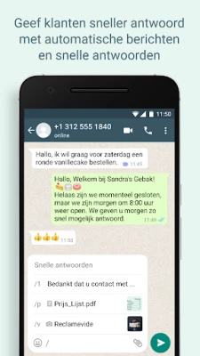 Werk efficiënter en bespaar kostbare tijd dankzij de geautomatiseerde hulpmiddelen van WhatsApp Business. Stel snelle antwoorden en afwezigheidsberichten in, zodat je geen enkele klantvraag mist en altijd proactief communiceert. Gebruik handige labels om gesprekken overzichtelijk te organiseren, eenvoudig te filteren en snel terug te vinden wanneer je ze nodig hebt. Deel relevante updates, aanbiedingen of nieuws via de Status-functie en faciliteer zelfs bestellingen en betalingen** direct binnen de applicatie, wat een naadloze klantervaring creëert. Je kunt je zakelijke account en persoonlijke WhatsApp-account op één apparaat beheren, mits je twee verschillende telefoonnummers gebruikt, en moeiteloos je chatgeschiedenis overzetten bij de configuratie.