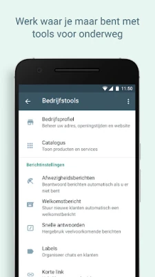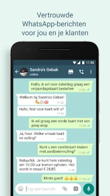 WhatsApp Business combineert de vertrouwde WhatsApp-ervaring met krachtige zakelijke tools. Deze app ondersteunt bedrijven om slimmer te werken, vertrouwen op te bouwen en te groeien. Profiteer van functies zoals automatische antwoorden, afwezigheidsberichten, labels voor gespreksbeheer en de mogelijkheid om aanbiedingen te delen en bestellingen te verwerken. Optimaliseer je klantcommunicatie en bedrijfsprocessen.